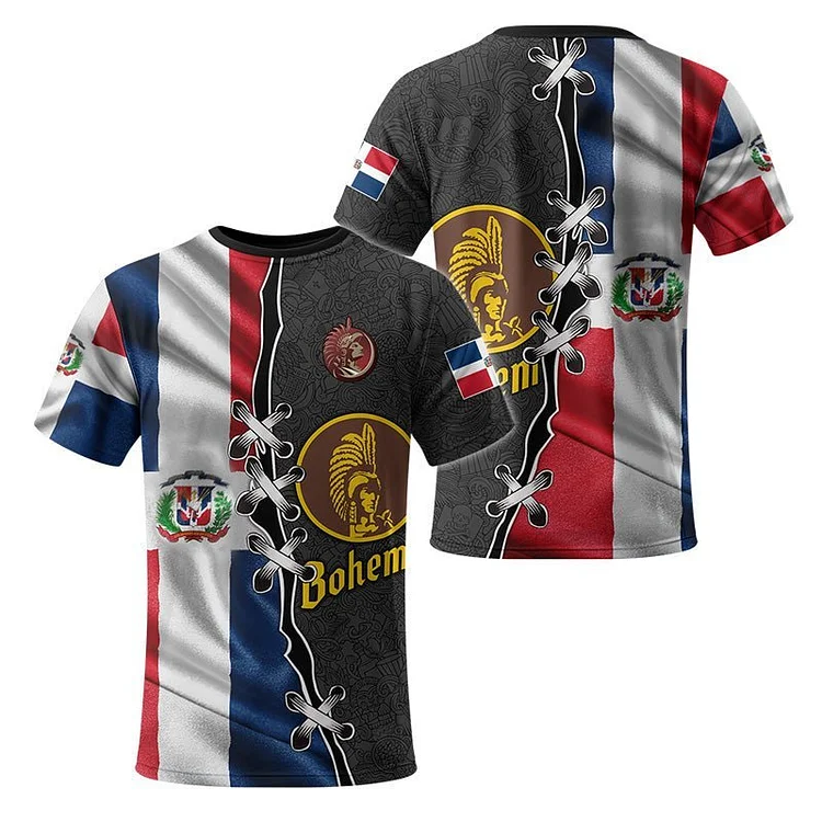 Whether you're dressing up for a special event or keeping it casual, the Bohemia Dominican Republic AOP T-Shirt is versatile enough to suit any occasion. Its unique design and comfortable fit make it a go-to choice for any wardrobe.