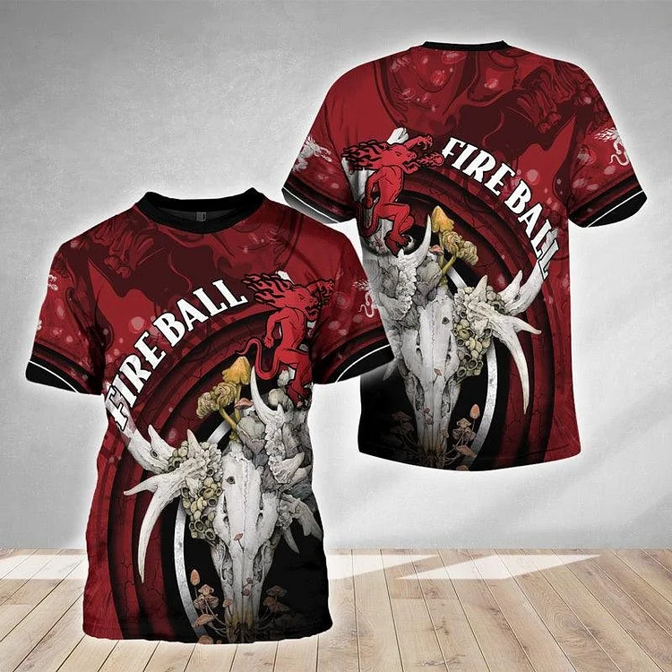 Fireball Deer Skull With Mushrooms AOP T-Shirt