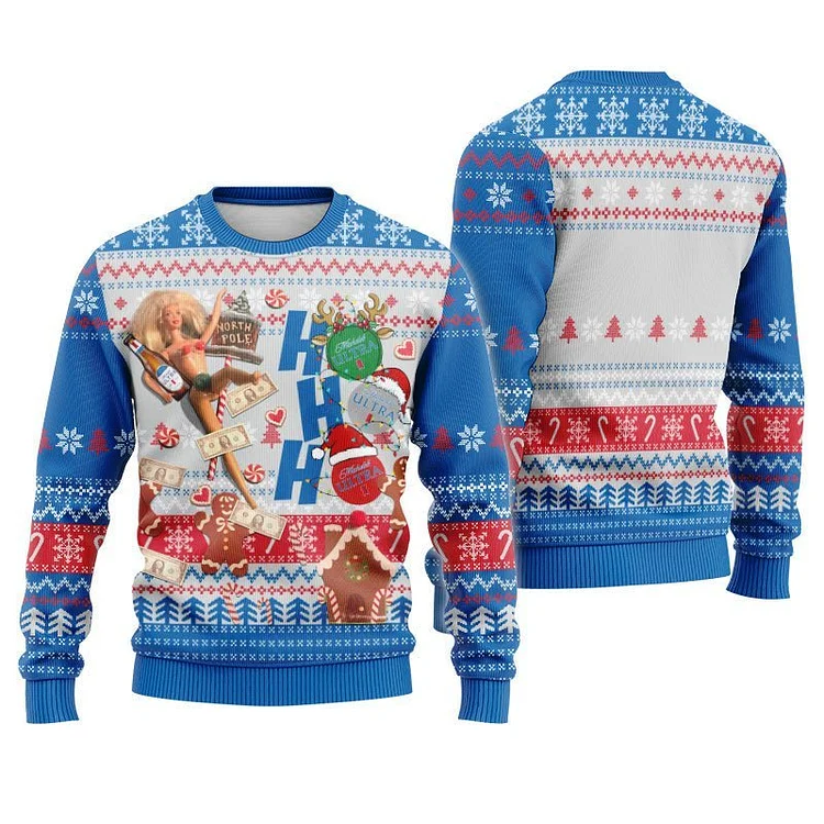 The perfect blend of festive fun and cozy warmth. Featuring an all-over print with playful designs, this sweater is ideal for spreading holiday cheer. Made from soft, high-quality fabric, it keeps you comfortable and warm during the winter months. Embrace the seasonal spirit and stay snug with a touch of humor in this standout piece.