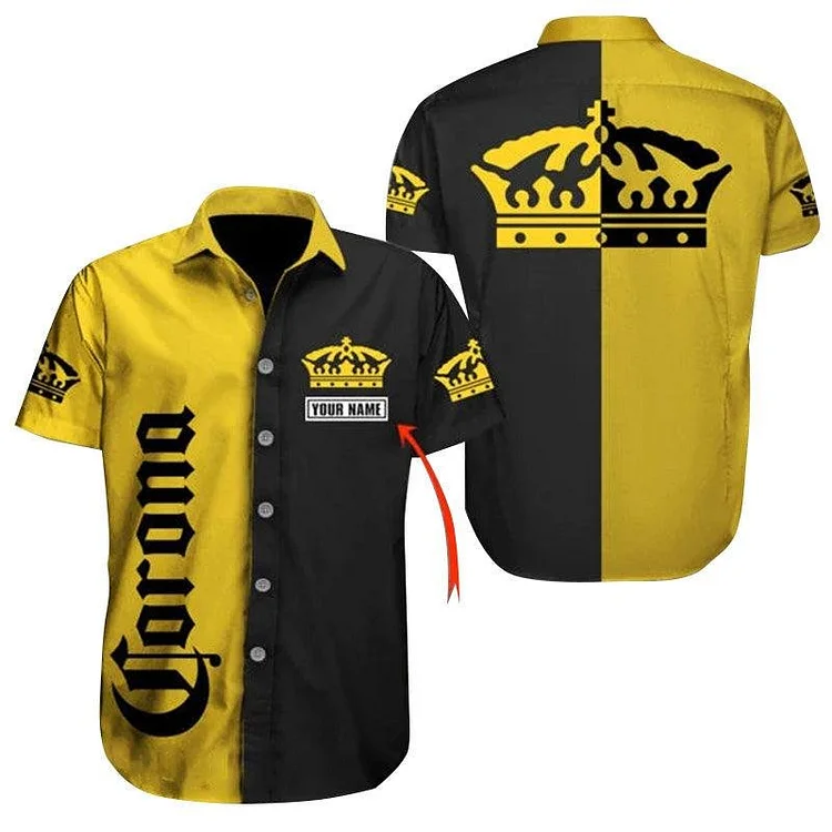 Elevate your style with our Personalized Multicolor Corona Extra Beer Button Shirt. This men's short-sleeved shirt features vibrant digital printing that never fades, making it a standout piece in any wardrobe. Whether you're heading on vacation, traveling, or attending a family gathering, this shirt is perfect for a wide range of occasions.